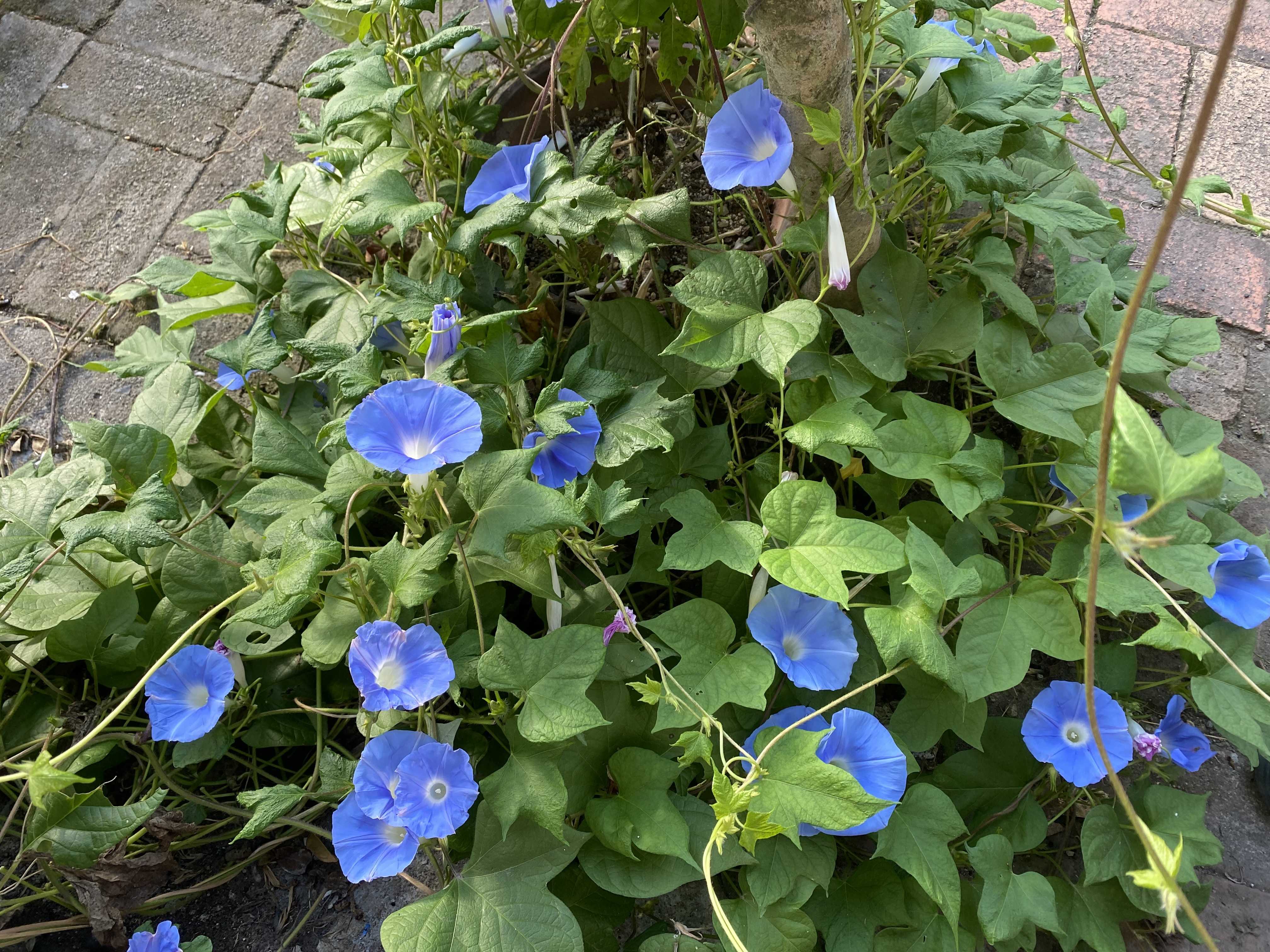 支柱も立てずに、放任の空色朝顔。椿の木の下で、コボレから勝手に芽を出しました。仕方なく、椿の幹を支柱にして、咲き登っています。右奥に見えているのは、松葉牡丹。花束みたい。これもコボレです。空色、赤色、黄色、自然に調和が取れています。月一回、Y医院の帰りに寄ってくれるIさんとお茶。山の牧場で育てた野菜を頂きました。初めて育ててみたメロンは、鹿にやられたとか。鹿の食べ残した実を食べてみたら、美味しかったと。(笑)一応、柵はあるけれど、鹿は飛び越えてしまうって。ロープを張って応急処置をしているけれど、広いからねー。動物も大変だろうし、困ったことですね。 花ブログランキングに参加しています。 応援のクリックをよろしくお願いします。 昨日のアクセス数 1424 昨日のランキング順 5 位