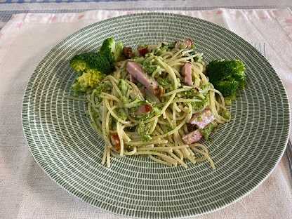 パスタを緑色に染めます。