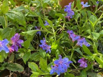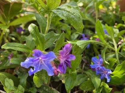 ツボミの時は赤くて、開花すると青い。