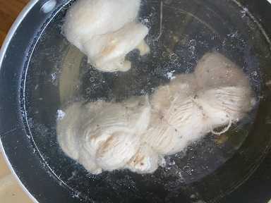 ムネ肉を、タコ糸がないので、