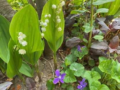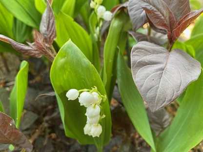 鈴蘭の間には、銅葉のリシマキアがいい感じ。