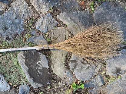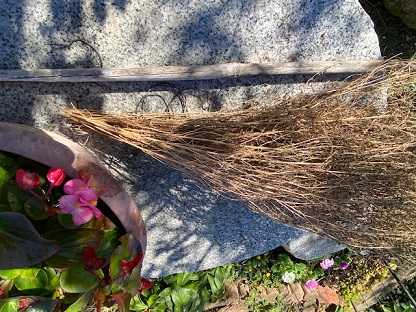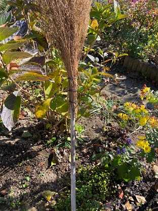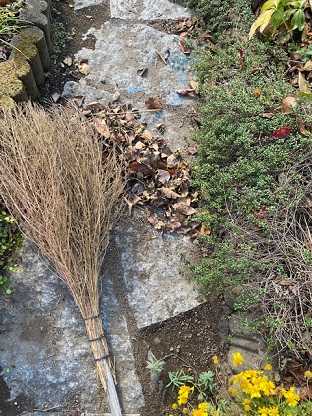 土を一緒に集めずに、落ち葉だけを掃けること。