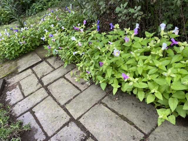 楽そうな、トレニアの咲くレンガ道をやっつけます。
