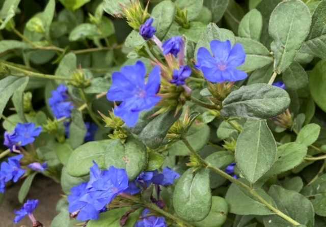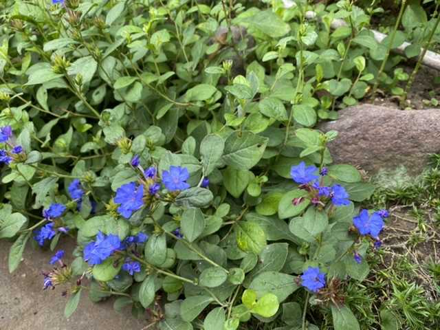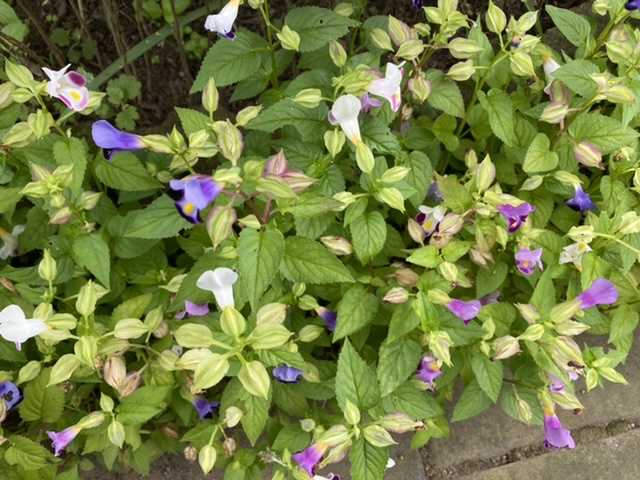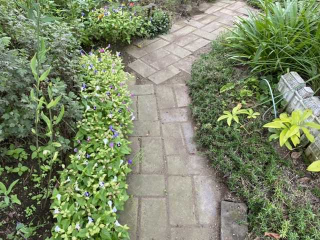 右側がルリマツリモドキ、左側がトレニアの小径です。