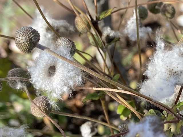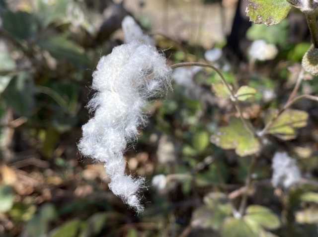 秋明菊を切らずに残しておくと、綿毛姿が見られます。