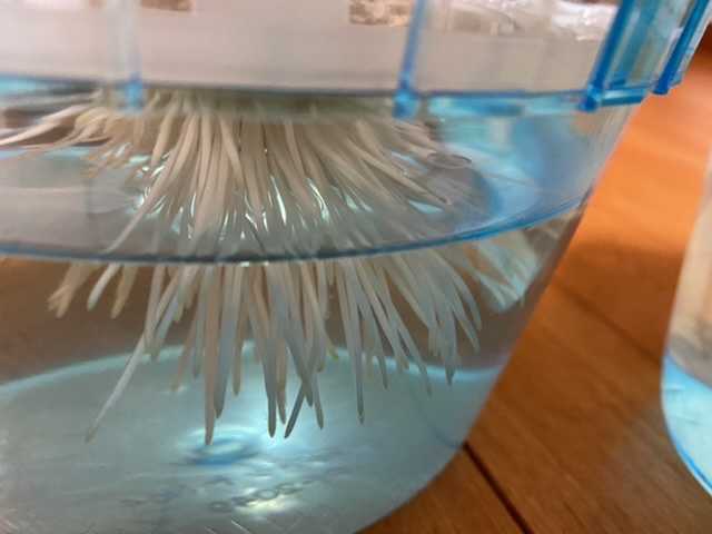 水の中で、真っ白な根を伸ばして生き物のよう。