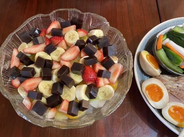 Sさんの白玉餅入りお汁粉、Mさんのお赤飯、