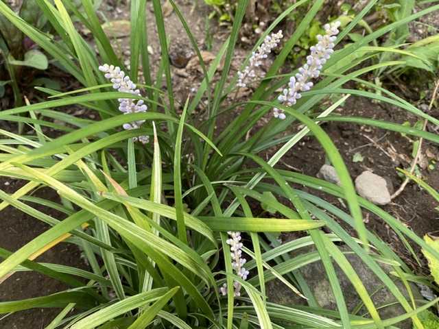 ​斑入りヤブランは、葉も花も白っぽいですね。​