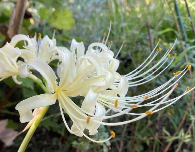 白い彼岸花が一本だけ、すっと咲いていて、あらまあ。
