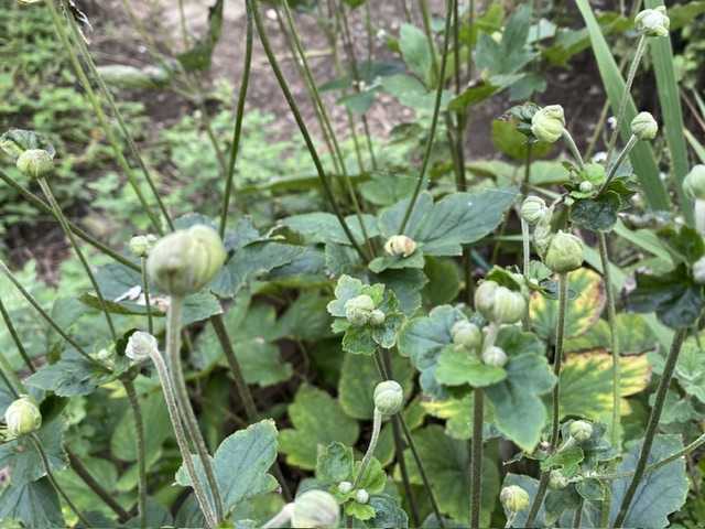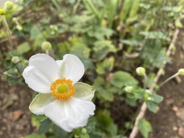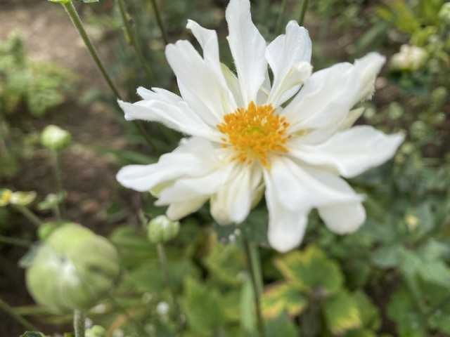 白、八重のシュウメイギクが咲いています。