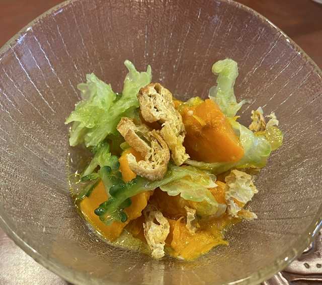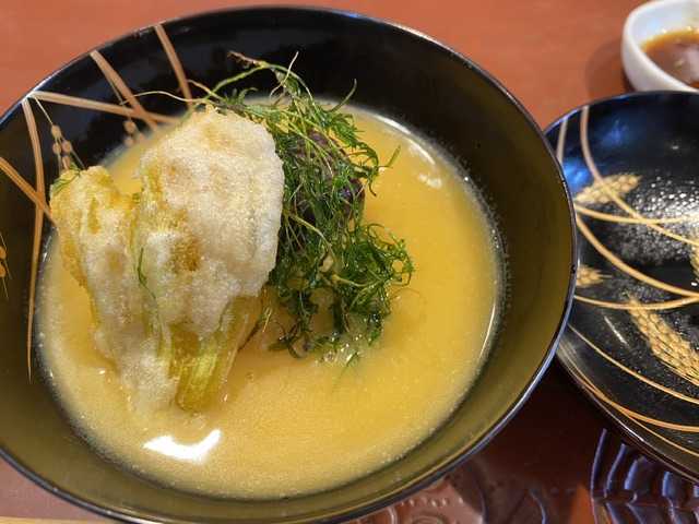 お椀の一番上のは、ズッキーニの花のフリッター。