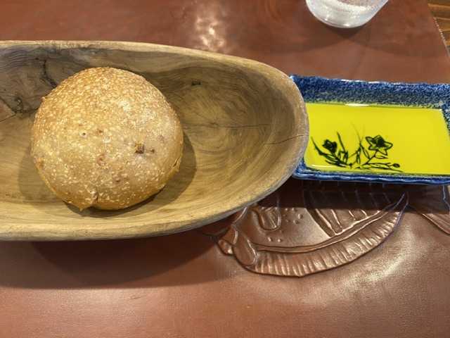 焼きたてパンは、オリーブ油をたっぷりつけて。