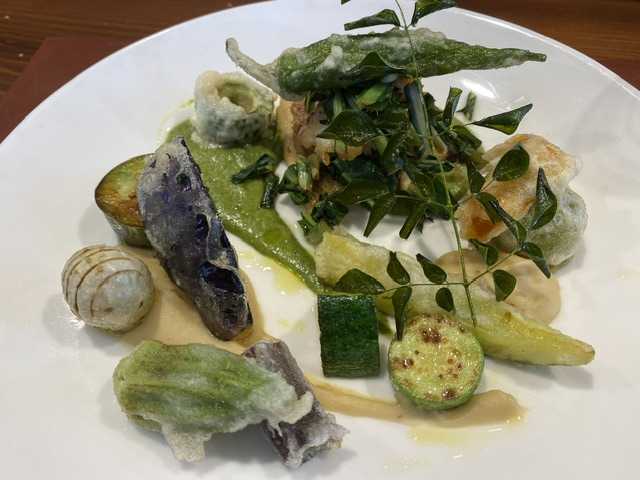 メインは、富山産タイのポワレ。野菜多過ぎ〜。