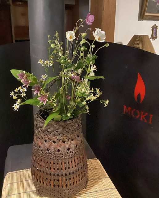 秋明菊白、ピンク、ホトトギス白、紫、野菊。