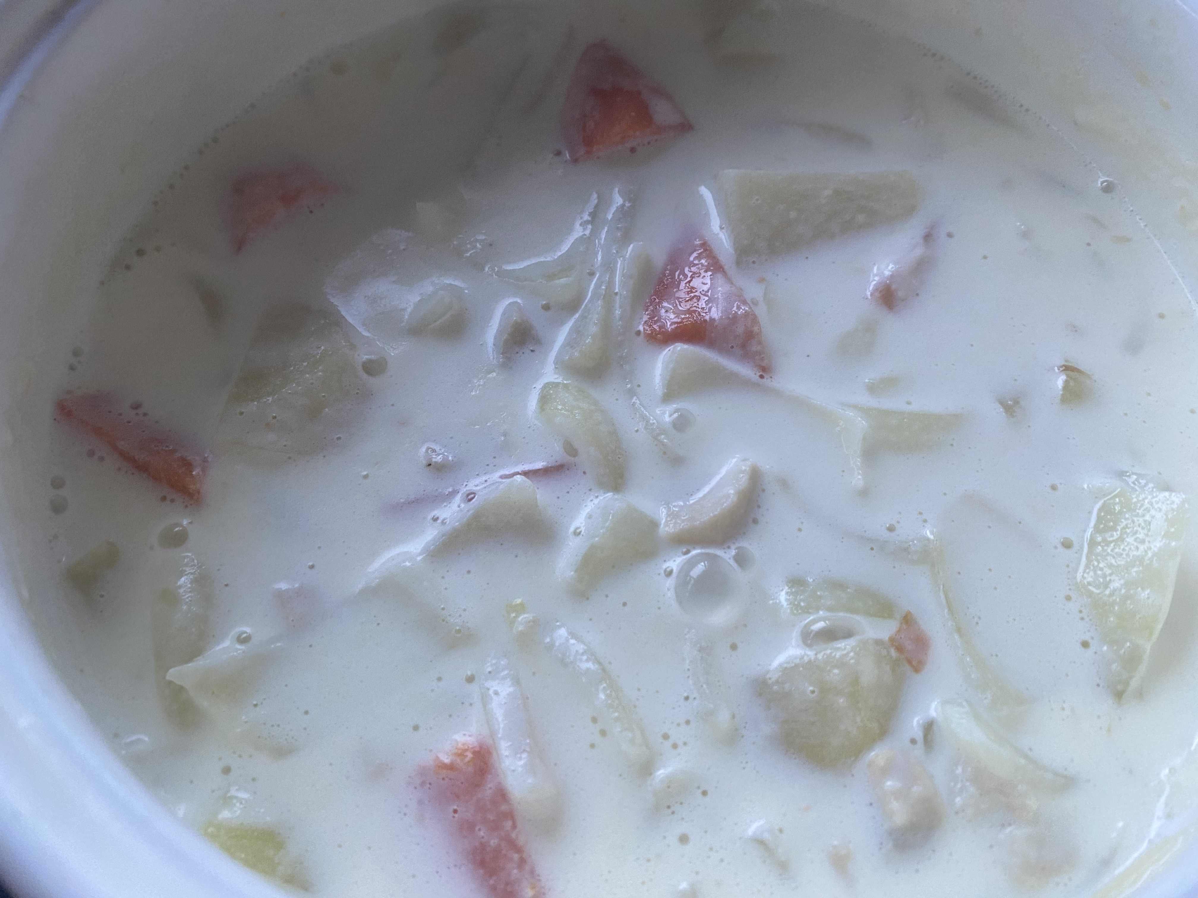 昨日のクリームパスタと同じやり方で、今日はシチュー。