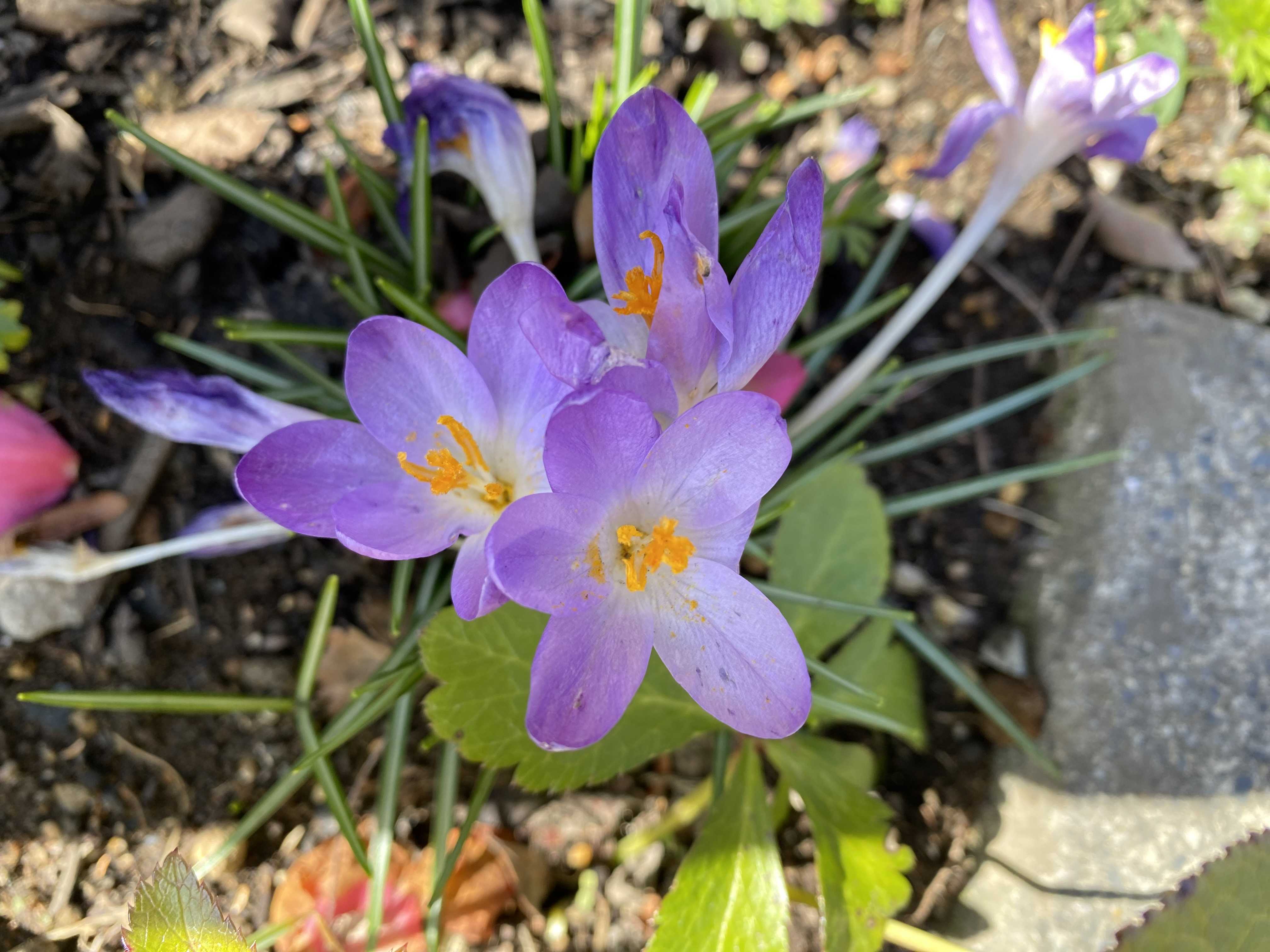 クロッカスが満開。こんなに、白色ばっかりだったっけ。