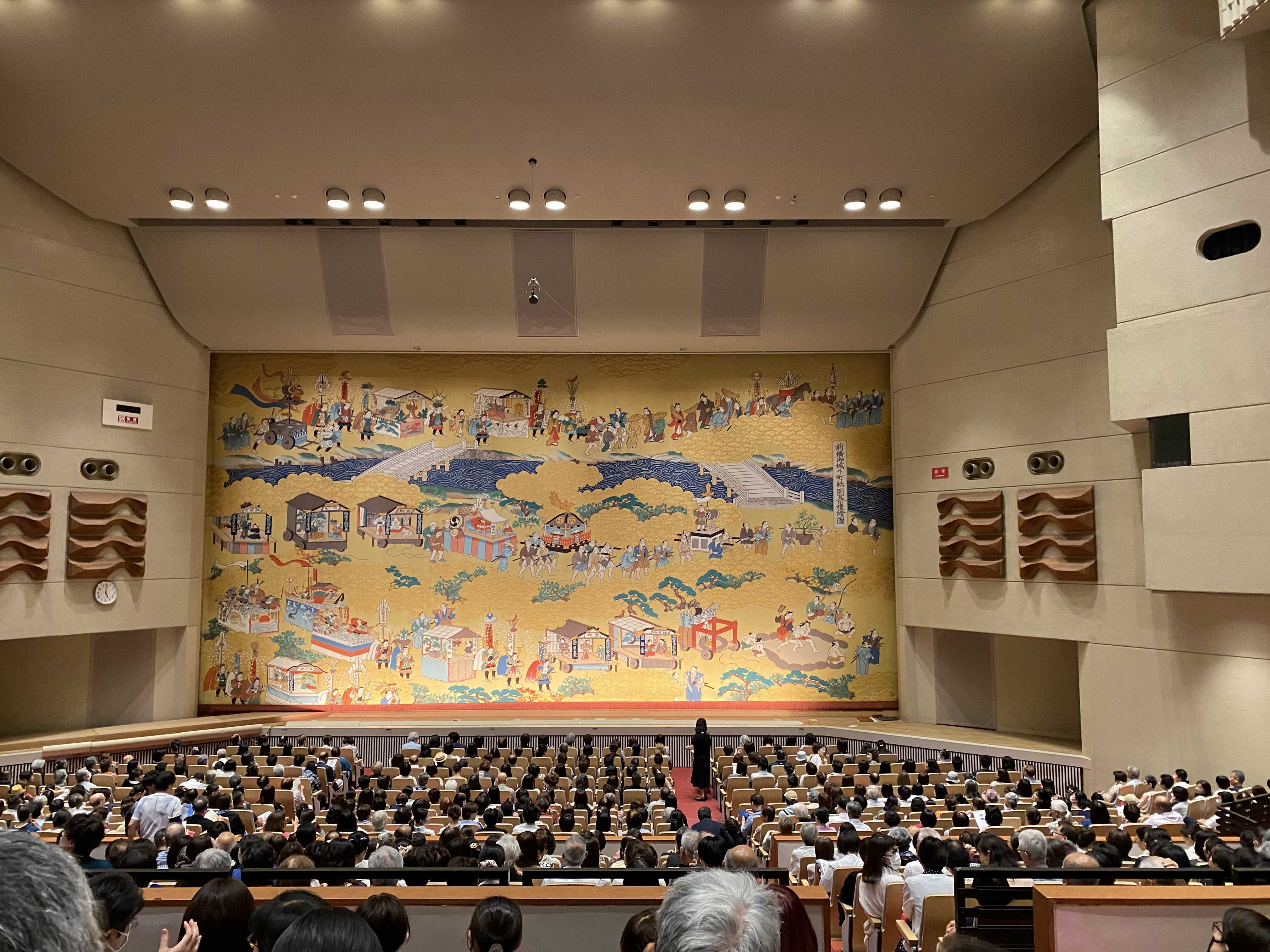 囃子方一行をバックに、見事に舞台が再現されていて