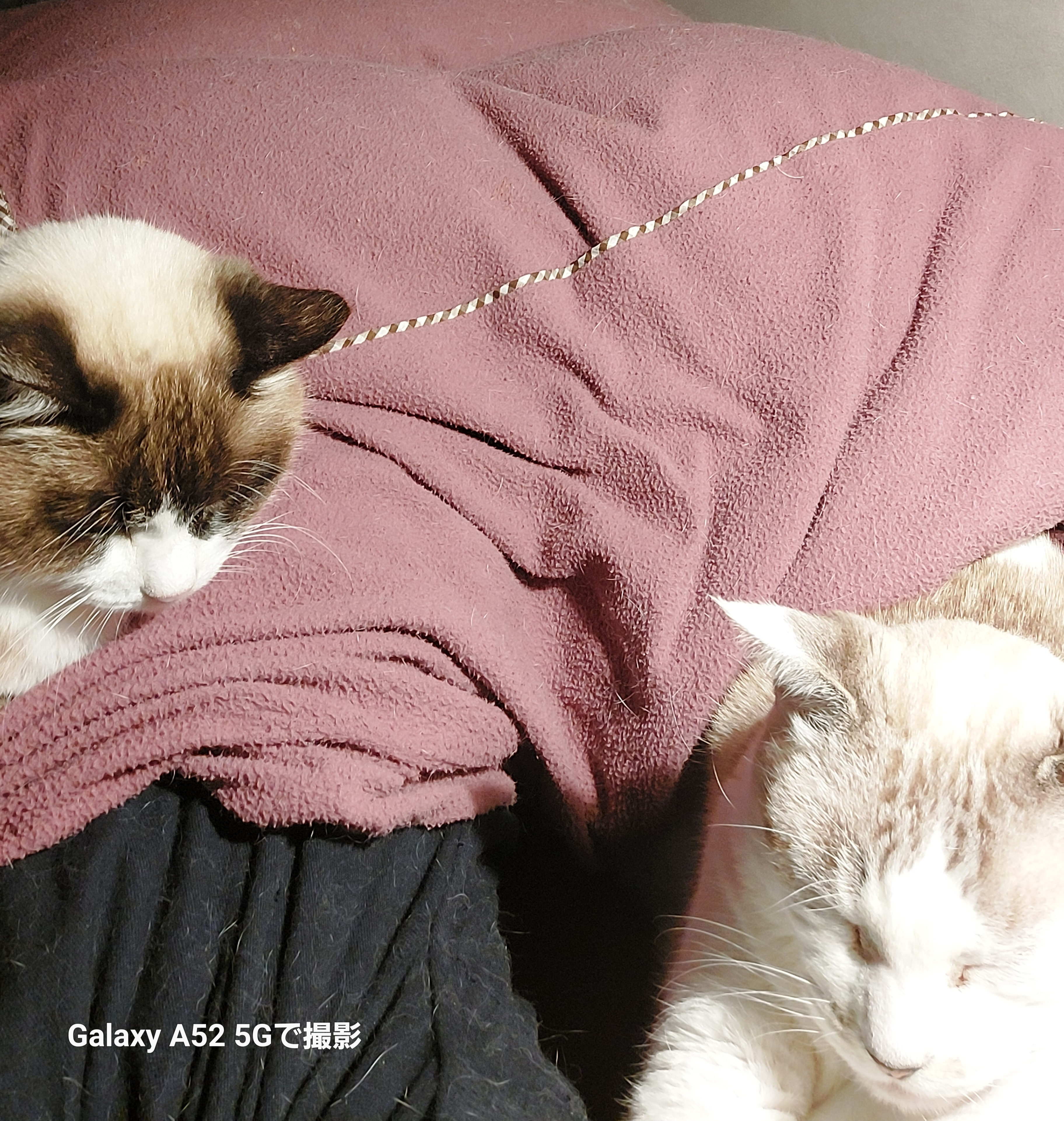 猫のくうさんは手まくら ふわさんは胸の上。