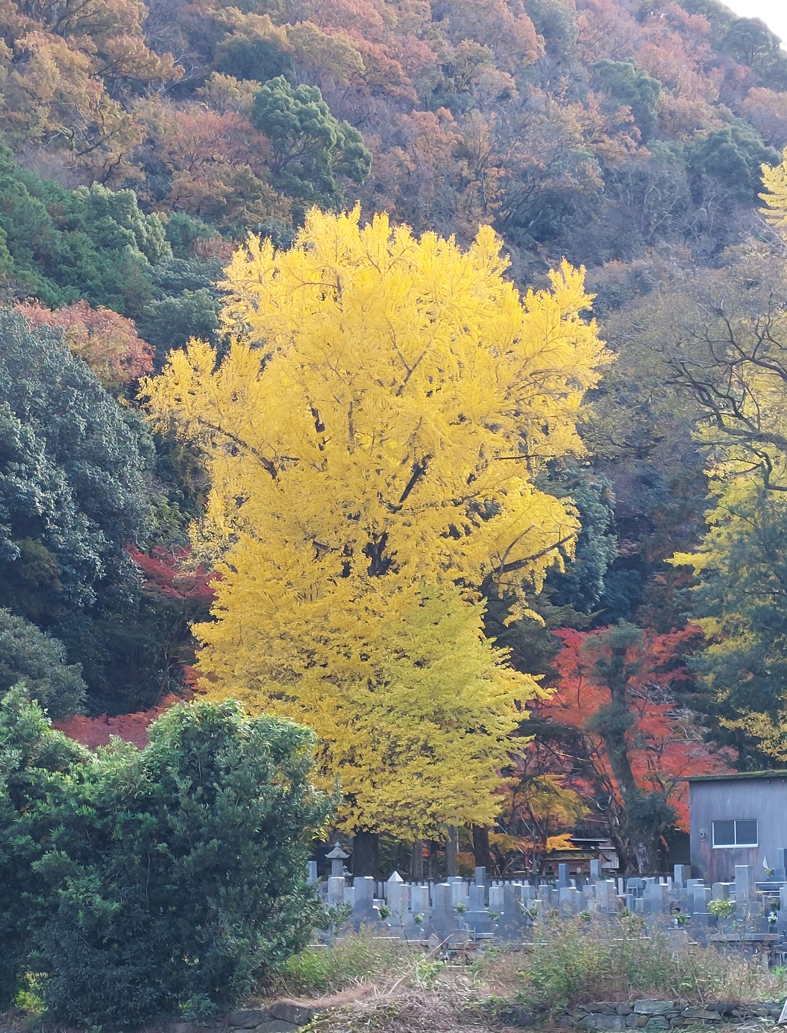 この大銀杏が先週の土曜日徳島本線の汽車の窓から見えたんです。眉山の麓でこの1本が際立ってました。水曜日思いだして見てきました。それは見事な大銀杏!!紅葉が見事。もみじの紅葉が見事過ぎるのか上の写真以外どの写真も楽天ブログにアップ出来ない。美しくてため息が出る紅葉でした。、