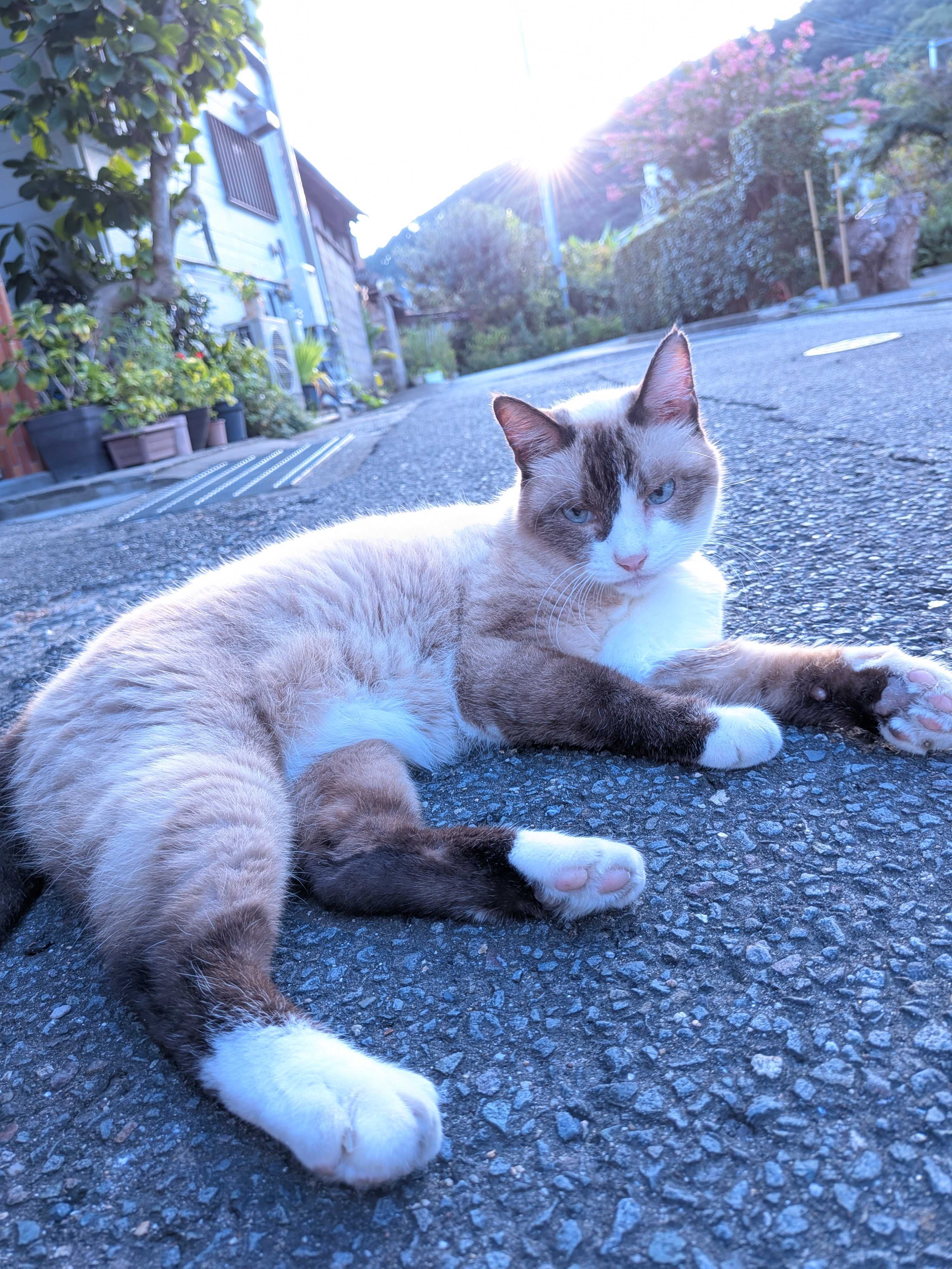 まだまだ猛暑の日々が続きます。史上最悪の猛暑です。9月になっても連日の猛暑日。みんなふらふらよれよれの日々の中ふわさんだけは元気です。今朝のふわさん。朝の散歩のあと、朝日が背中から登ってきました。東の水道局の配水池の手前の空き地。朝顔が咲いています。青の原種の朝顔。こちら植えるとこがないので春過ぎに撒いて忘れていました。すごいふわさんの朝散歩のおかげです。 黄色のオシロイバナも見れました。 朝散歩の猫ジャラシのおみやげでポーズ。 私が読んでた新聞でうとうと。夕方夕方は隣の屋根の上で。私が外に出て来るのを待機中みたい。9月になって夜、朝早くはほんの少し涼しくなりました。 猫の元気を分けてもらってきょうも穏やかな平和な一日になりますように。そうそう今朝2階の窓の外に朝顔の花が咲きました。見えますか?朝顔ってすごいなあ。
