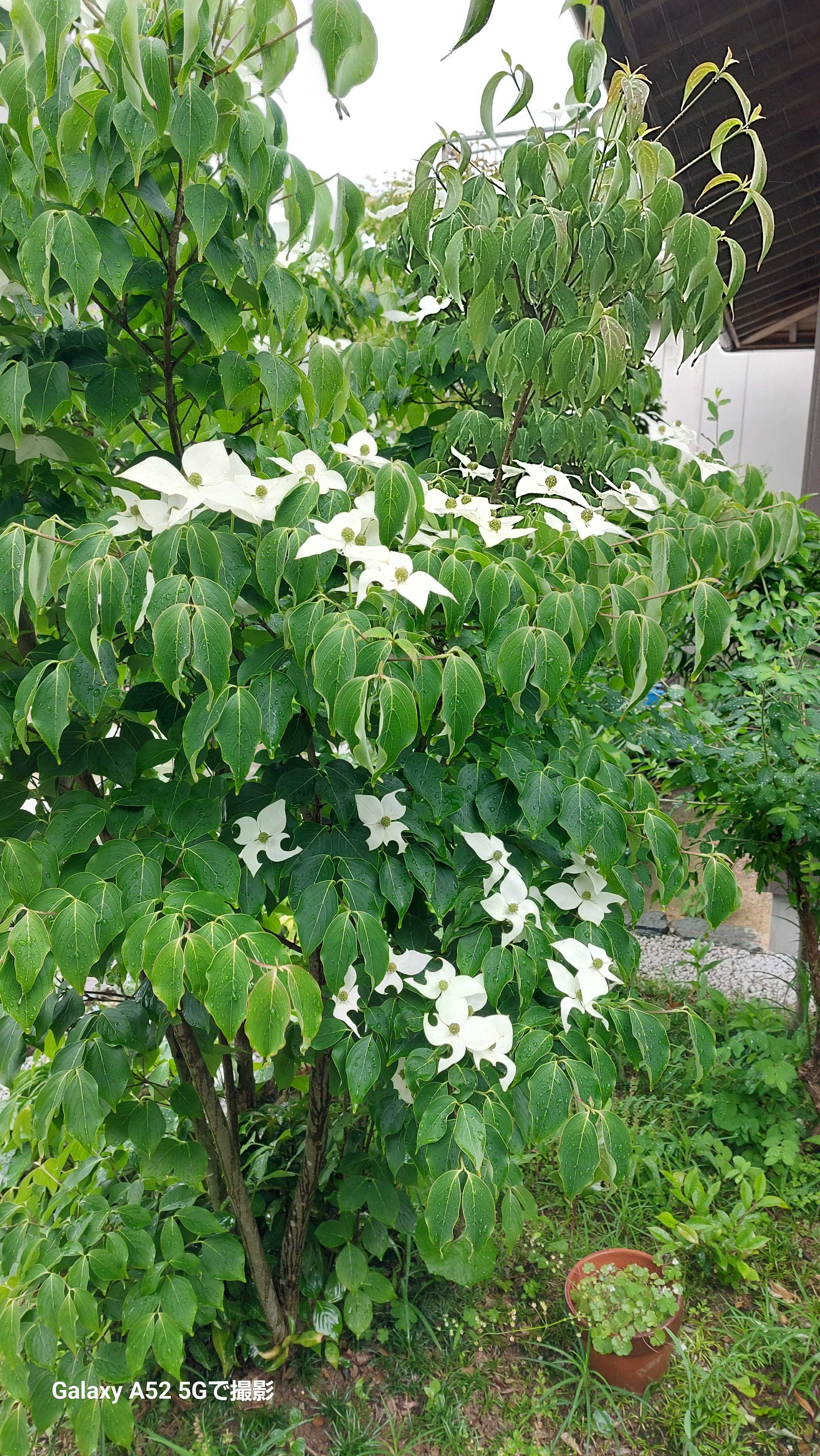 白木蓮の若葉見て発見したこと。うぶ毛におおわれた柔らかな葉は雨の露を貯め乾燥を防ぎ、強い日差しがきても枯れないように工夫されてると思いました。成長した緑の濃い葉は露が貯まりません。若葉だけ、美しい露が留まり葉を守っていました。若葉の露の不思議から植物の強さを考えさせられた梅雨の1日。2階の窓から白木蓮が覗いています。よく若葉が見えるようになりました。すごい成長です。ホオジロ?山法師の花常緑の月光。満開。ガクアジサイとおたふく紫陽花。大島緑花も。混じりあって新種ができそうな感じ。おたふく紫陽花かわいい。梅雨時は家のなかも紫陽花づくし梅雨時はお弁当もいいかな、とたまには、夫のぶんプラス自分用も作ってみた。😊。今年の梅雨の美味しい仕事↓琵琶たくさんいただいたのでシロップ煮に。美味しくできたので、シロップ煮の半分は実家のお土産に。母に喜ばれました!