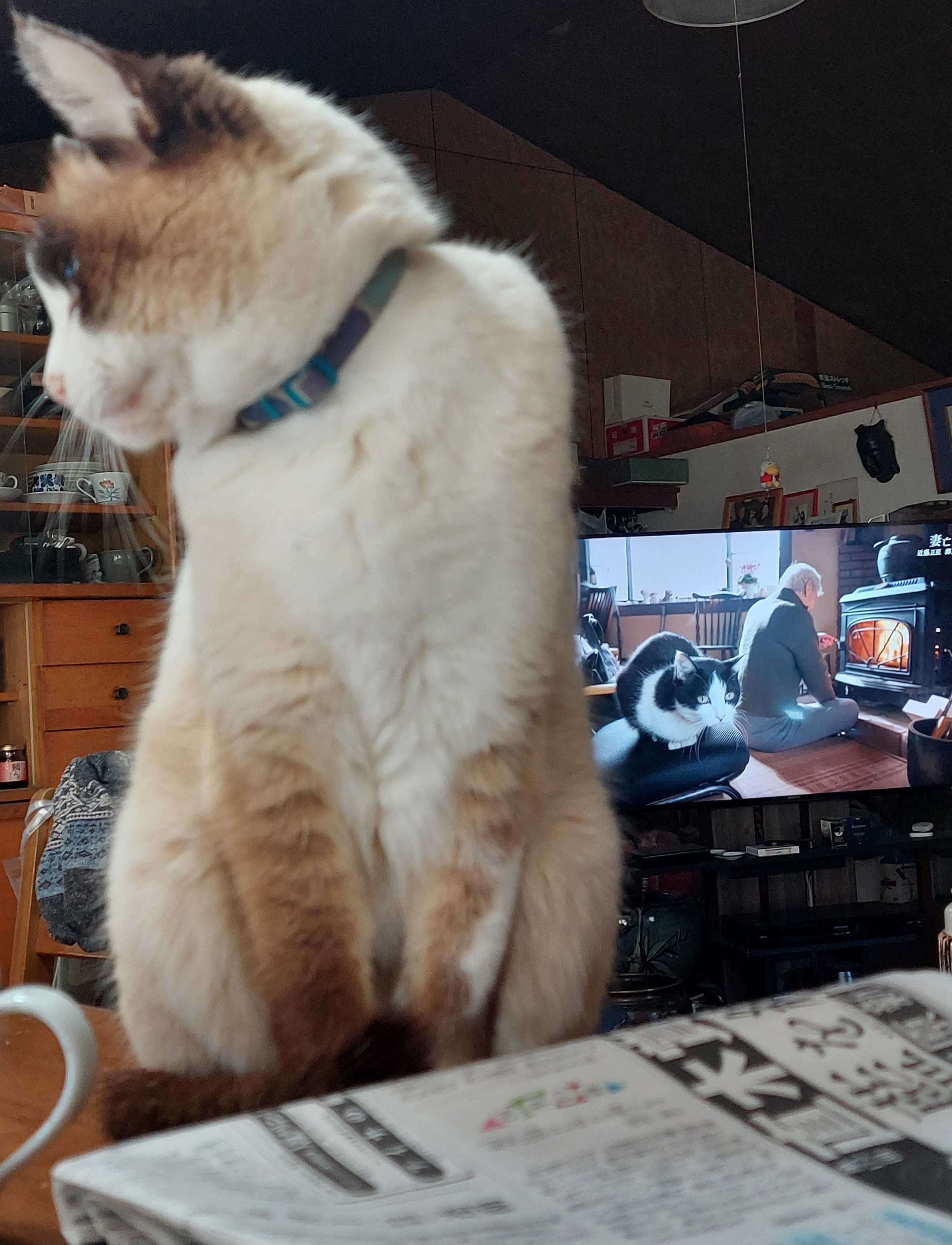 こどもの日のはなさん。こどもの相手をしてくれてけなげ。くうさんもふわさんも一気にダッシュで逃げていないのに。はなさん水を飲むのは風呂場だけになった。朝も昼も大きな声で一階の風呂場の前でないて誰かを呼ぶ。降りてきてチョロチョロと水を出してやると首を伸ばして飲む。早朝、階段下で待ってることもしばしば。風呂場でしか飲めないのは鼻の病気がいよいよ悪くなってきたからか。もひとつ最近この訪問者さんの見張りにも忙しい。猫窓で見張ってて侵入しそうになると大きな声で威嚇!逃げない!しばしば2階にも。友だちになりたいのかなあ?仲良くなりたいのかな?くうさん空さんは寝てばかりだけどまだまだ年長者の風格がある。わたしのお腹の上でまったり。年取って甘え上手になった17歳。そして、ふわさん外が好き。この猫も徘徊してたぶんよそ様のお邪魔虫猫になってるはず。ご近所さんすみません。うち猫のはなさんはテレビ好き。しかも好きな番組はかぶり付きで見る。平和だなあ。
