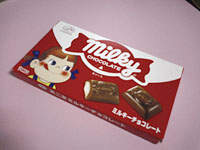 今日、寝坊して5時半に起きちゃったので、「あーもーめんどくせー、家で仕事することにしよ。」と思い、会社へ電話すると・・・。私 「おはようございます。まんにょです。」上司 「おはよう!」私 「今日寝坊しちゃったんで、家でやろ・・・(うかと思うんですけど。」を言わせてもらえず)上司 「(否定の)ううん!今日○○会社の□□さんが来て修正資料置いて行ったから!」私 「あ~、そうですか。じゃあ今から行きま~す!(←やけくそ)」結局、出社して仕事して参りました・・・。損保ジャパンの業務停止関連で緊急な修正だったのです・・・。こーんちーくしょー!昨日からチョコレートが食べたくて仕方がなかったので、帰り道、スーパーに寄って買ってきました。不二家の『ミルキーチョコレート』。コーヒーもビールも飲めないような、お子様口な私にとっては不二家のチョコが一番美味しく感じます