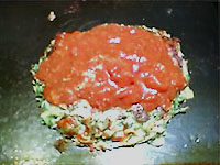 ぶんきちぽんさん に教えてもらってた 『トマトソースのお好み焼き』