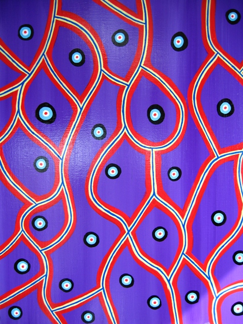今日は雨。そして夕方から激しい風が吹き始めました。浄化の雨と風。またどんなふうに生まれ変わるだろう。今日は朝から展覧会『私という宇宙』のDM配りです。市内のたくさんのお店や施設にDMを置かせてもらいました。また明日からも、続きそうです。去年に比べ、だいぶ体も軽くなって、楽になってきた感じがあるので、ちょっと無理をして、「まだ大丈夫だろ」「まだいけるだろ」と思って頑張っていると、あるときガクッと力が抜けて、意識と体が分離してしまいます。この微妙なコントロールがなかなか難しいです。展覧会前に、こんなことを言うのもなんですが、私の絵は、まだ自分の30%ぐらいの力しか出せていないと思っています。日常生活に至っては、私ができることは普通の人の20%ぐらいでしょうか。しかし、人生にはいい時期も悪い時期もあり、また、青年期があり、中年期があり、老年期があります。人生の全ての時期が、100%最高の状態であるというものでもありません。山あり谷あり、晴れたり曇ったりです。私は今、たとえ持ってる力の30%でしか絵が描けなくても、常に全力で絵を描いています。全力でやっても30%の力しか出ないけれども、それでいいのだと思っています。だからこそ、展覧会という形で、自信を持って皆さんに披露いたします。常に全力でやる。常に自分のできる最高のものを提供する。これでいいのだと自分を納得させています。この絵のタイトルは、「宇宙の模様」です。宇宙、あるいは小宇宙である自分の体内に、このような模様が見えましたので、絵にしました。F30キャンバスにアクリルガッシュです。