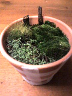 ヨウタロウが緑の寄植えをつくっていました一番お気に入りなんだそうです枝を2つ植えて美を追求しているところが面白いです苔が好きな7才児っていったい・・とおもってしまいますそのうち京都の苔寺とか一緒にいきたいですね