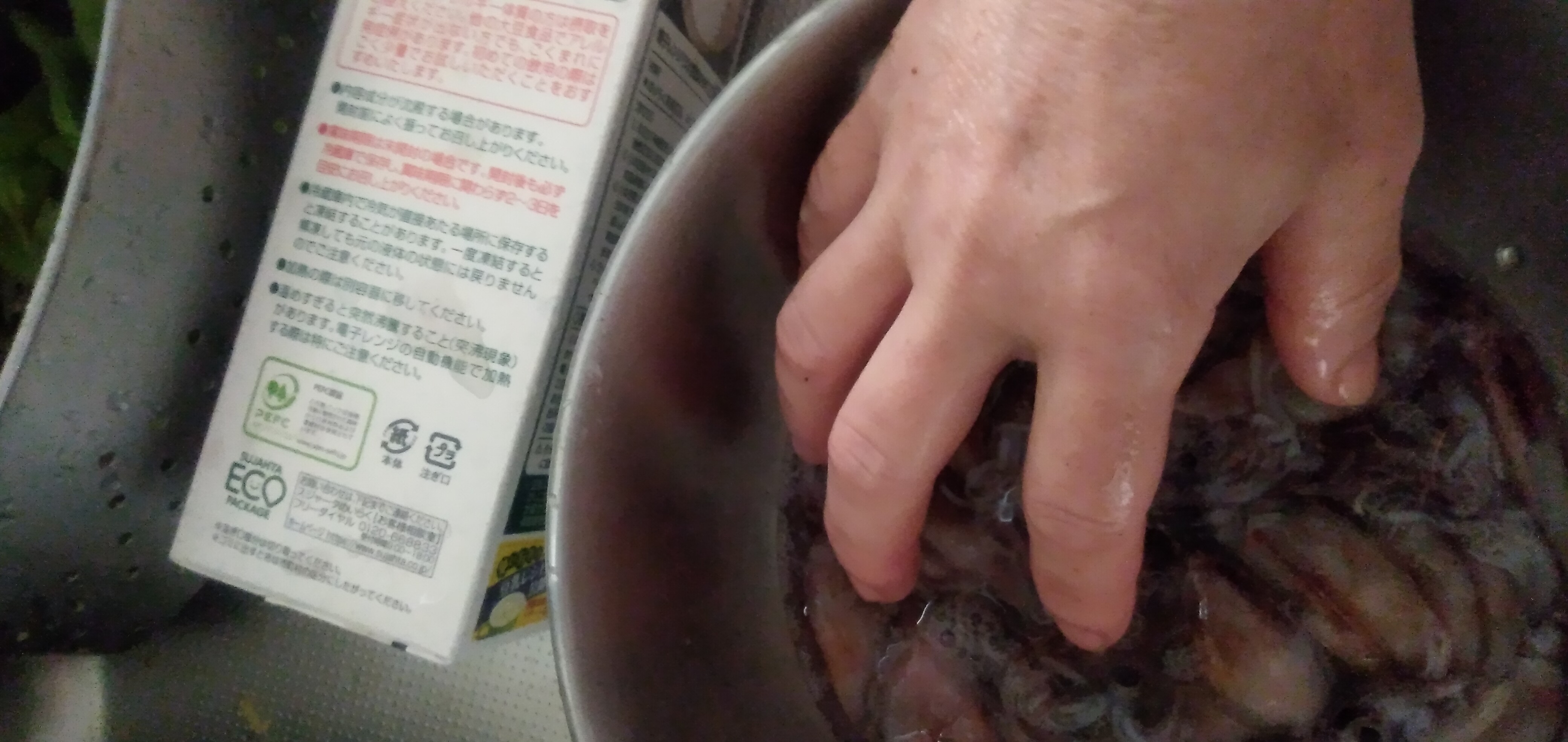息子がホタルイカをくれました富山に行ってホタルイカを捕ってきたのでお裾分けしてくれたのです海がホタルイカで青く光っているのが見られたようですさて、洗って茹でて、酢みそでいただきまーす❗ん❓❓ジャリジャリしてませんか?結構砂が入っているのですね…😵改めてネットで海から取ってきたホタルイカの食べ方をチェック最初にボールに水をためて指を立ててかき混ぜて、何度も砂がなくなるまで洗う‼️そのあと3分茹でるそして冷水でさらによく洗う目玉もその間に取れてしまったものもあります残っている目玉を取り、くちばしを取り、背骨を抜き、地道な作業を乗り越えて、再びいただきまーす‼️ウン、今度は美味い😆洗いすぎて頭と足が分離してしまったものもあり、内臓も出てしまったものもあり、でも砂は取れています‼️やっぱり砂は食べ物ではありませんので…💦