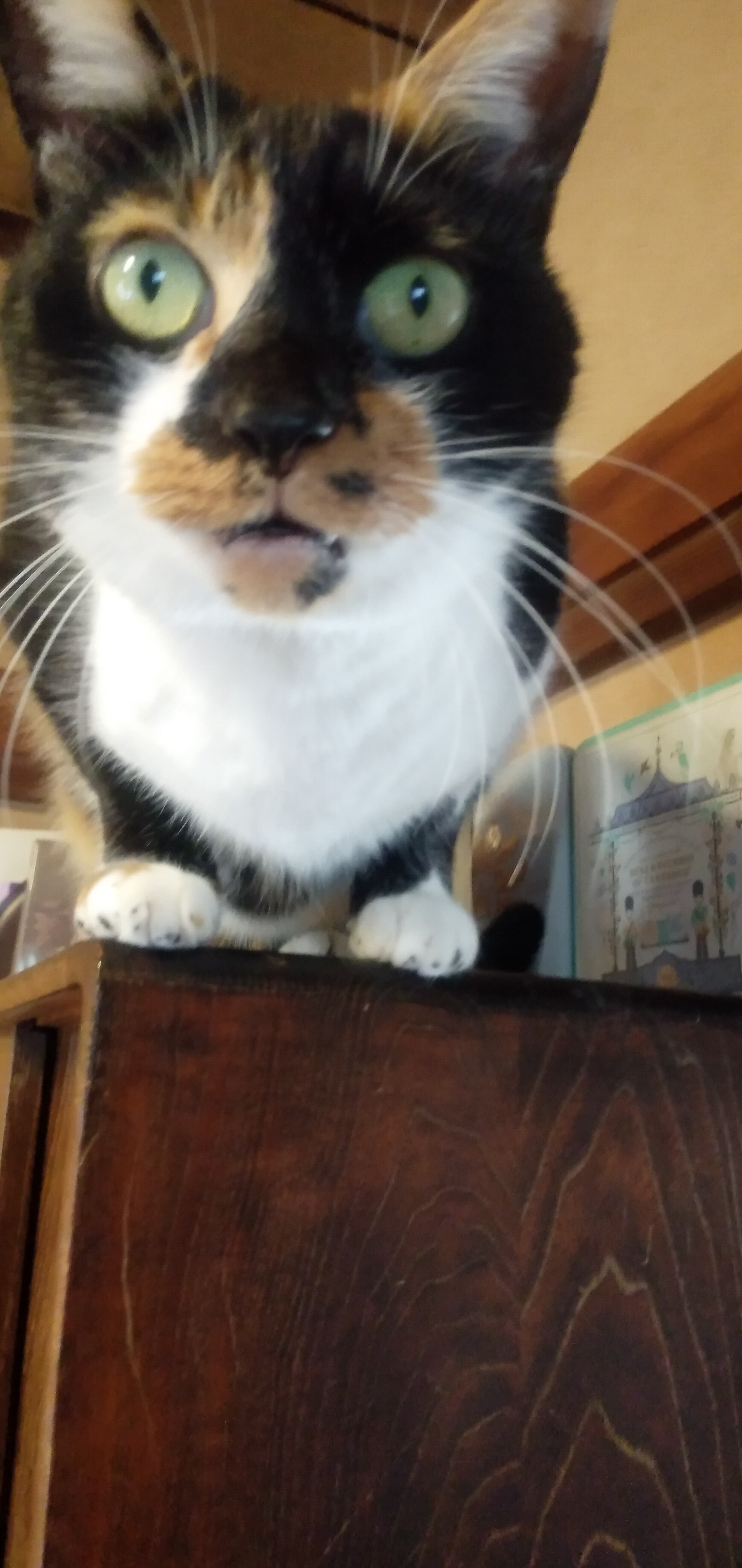 朝から何も食べなかったぽぽにゃん💦寝てるかと思ったら、今度はニャーニャー、うろうろ泣きっぱなし。ご飯も食べないし、トイレもしません。とりあえずお医者さんへ。血液検査をして、何かの炎症の数値が高い、と言われ、お腹の動きを良くする点滴と抗生剤の注射をしてもらいました。 その日は夜中鳴きどおし、これは初めてのことでびっくり。次の日はセカンドハウスの暇そうな夫に戻ってきてもらって、またお医者さんに連れて行きました。私はパート勤務…。今度はエコーといつもの腎臓病の点滴をしてもらって、特に異物を飲んだようではない、と言われ、様子を見ることに。この日は少しご飯を食べまして、鳴き声も収まり、回復の傾向が見られました。うんちは4日後にやっと出て、うんちが詰まっていたようでもなく…そして現在、日常を取り戻したぽぽにゃん😄👍👍良かったーもう11才なので、高齢だし、ご飯も前ほど食べなくなったし、でも平均寿命までは元気でいてほしい。ぽぽにゃんに救われたことは数知れず。動物は癒やしですからね😄💞今回お医者さんで言われたのは、誤飲のこと。誤飲で連れてこられるペットが多いとのこと。部屋はいつも片づけておくように、あと、外には出さないように。…耳が痛いです💦💦💦