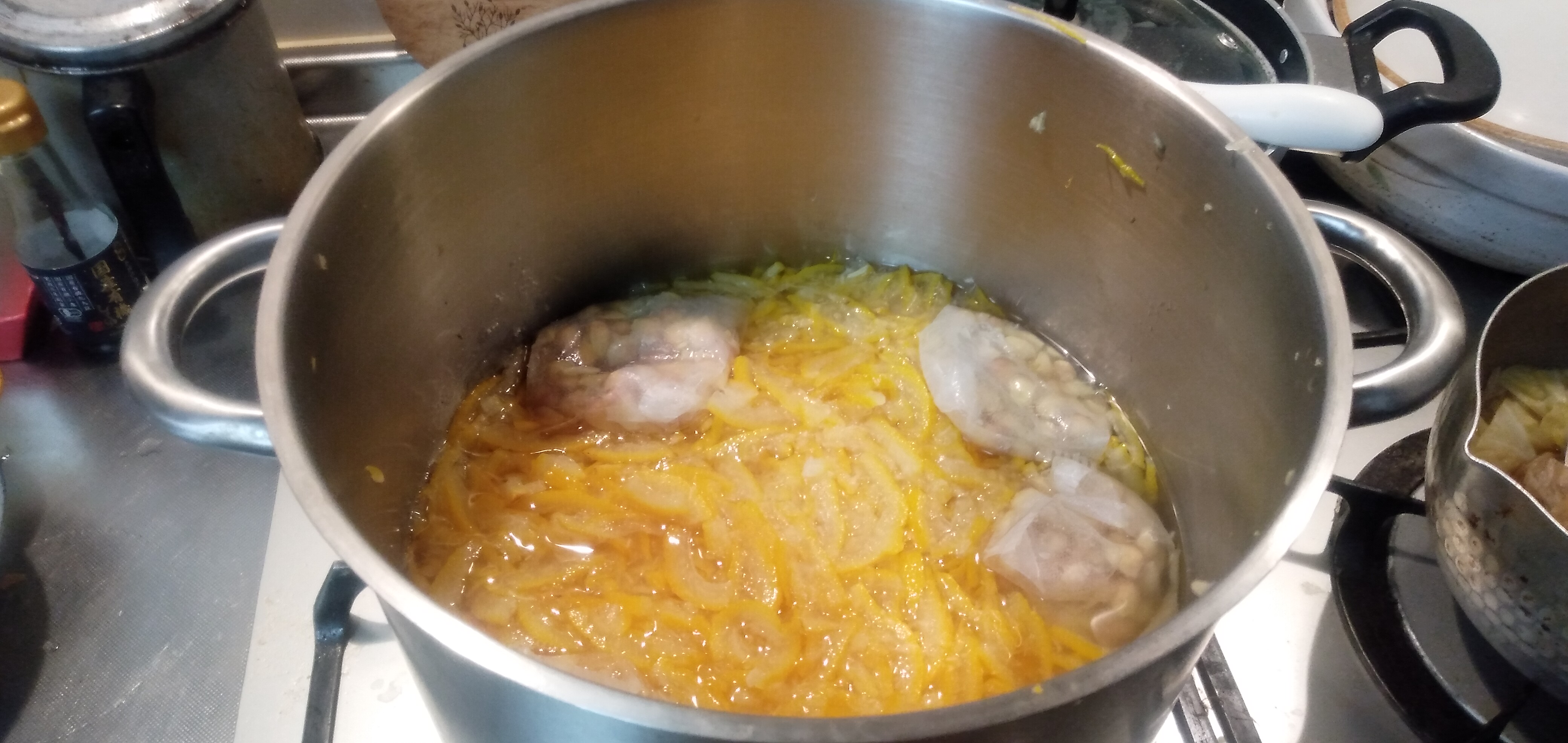 今年も柚子をたくさんいただきました😄‼️お庭にたくさんなっていてうらやましい…毎年たくさんなるなんて、うちも欲しいな…トゲに気をつけながら3袋くらいいただきまして、漬物やゆず湯を楽しんだ後、のこりは恒例の柚子ジャムに。いろいろ作り方はありますが、今はとっても簡単になってます😅まず半分に切って、果汁を搾り、皮を千切り、種はお茶パックに3袋くらい取っておきます。皮は3回茹でこぼして、砂糖を同量より少なめにして、種とともに弱火でコトコト、とろみがついたら出来上がり。できました‼️1年間柚子ジャム、柚子湯が楽しめますありがたい限りです😄🙏🙏