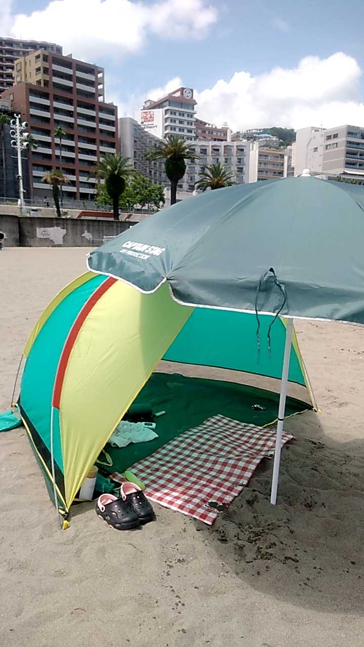 夫が退職した際、旅行券をもらったので、どこか出かけようと言いつつ、1年経とうとしておりますもらってから1年の期限付なので、どこに行くか迷っていましたが、近場の熱海に行くことに沖縄とか四国とか、行ってみたいところはありますが、台風が来たりすれば飛行機も危ないし…熱海なら無難かな、と1日目、海❗水着を30年振り?引っ張り出してビーチへ海って若い子で溢れてるイメージでしたけど、熱海はのんびりしてて、うちぐらいのリタイア組でも楽しめました😆うるさい音楽なし、海の家なし波は静か、砂地が続き、浅くて泳ぎやすい泳いだのは何年ぶりでしょうプールも行ってないし頭は水につけたくなかったけど、暑くてたまらず仰向けでプカプカ浮かんでいたら気持が良かった~で、涼しくなったらテントに戻って、暑くなったらプカプカ、を繰り返し、のんびり、リラックスこれって山でガツガツ歩くより全然楽じゃないですか😲⁉️涼しいし断然山派の私ですが、ちょっと考えを改めなくては…💦4時でビーチは終了、監視員がお仕事終わるため、海から上がらないといけません規則正しくてよろしいです安全第一これだったら、海、楽しめます❗❗で、ビーチから近い宿に行き、温泉入って、夕食食べて、また夜の海の様子を見に出かけましたわ、南国だー😃✨✨お祭りがあるらしく、あちこちでお囃子の練習の音が天気が下り坂だったので、お祭りがちょっと心配ではありますが…というわけで1日目は終了です😃🎶