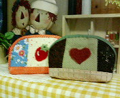 きのう、福をもとめて十日戎に行ってきました。「商売繁盛で笹もってこい!」ってやつです。商売をやってる人たちはみんな戎さんの笹を買ってましたね。うちも買うか悩んだのですが、笹が2千円以上って書いてあります。「以上」ってな~に?飾りの小判やら何やらはたぶん1個千円でしょう。景気のいい人は1万ぽーんと出して、「釣りはええでぇ。」ってとこでしょか?買うだけで悩んだ時点で、もう負けてますよね~しかし、あんな笹を買ってもどこに置く?すぐに葉っぱは、枯れ枯れになるしねぇ。結局、おみくじだけして帰りました。このおみくじが「大吉」だったので、「よっしゃぁ!」ですわ。で、新作キルトはこれです!根性がなく30センチの大きさなんです。家族に「何するの?」って言われました。「何かに、掛けとくヤツ。」です。で、これも作りました。今はまっているポーチです。でも、これは東京の方へ行ってしまいました。今年は、布物に力を入れようと思ってます。と言いながら、今は昼間はトールペイントもしています。来週から教室も始まりますので、作品見本を製作中です。