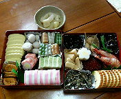 (今年のおせち)あけまして おめでとうございます!みなさんはどんなお正月を過ごしているのでしょうか?今年はおせちをいつも買ってる生協のセットのおせちをやめて少し自分で作ってみました!31日に天満市場に買い物に行って、数の子200g・えび2尾。子供の同級生の総菜屋でくわい5個・たいのこ・たけのこ・昆布まき。そのほか、野菜。きゅうりがめちゃ高い!八百屋のおっちゃんが「きゅうりは今、高いからやめとき!」ってあるのに売ってくれない。もう少ししたら安くなるってことかなぁ。そのあと、ダイエーに行ったら安くて適当な量のおせちセットが売ってました。来年はこれにしようと思いましたね。結局、かまぼこだの伊達巻だの買い足して7000円くらいかかりました。家に帰ってからさっそく、煮しめを作って夕方にはおせちが完成しました!2尾だけ買った海老ちゃんもうまく出来て、大満足です。そして、昨日は近所の神社に初詣に出かけました。毎年の事ながら、これが一年最初の「並ぶ」と言うことになるのです。住吉大社とか大きな神社は、大きな賽銭箱があってみんなでまとまって遠くからお賽銭を投げるって感じですが、ここは賽銭箱が小さいのでひと家族ずつ順番になるので、毎年列が出来てしまいます。今年は隣のスーパーの前まで伸びていたので驚きました! そんな感じで今年もはじまりました。今月は27(土)28(日)にお店をやります。昨夜もポーチが1個完成しました。それでは、今年もよろしくお願いします。