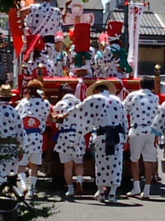 今年も夏祭りの日を迎えました。昨日は今までの中で一番暑かった!脱落者続出。小学校4年生から中学3年生までが山車の上の太鼓をたたきながら町内を回って神社まで朝8時から夕方5時まで巡行します。お母さんたちは町内のお家や商店街でご祝儀をいただきます。大人も子供も体力勝負!うちの子供も途中リタイアしました・・・今日は1時から神社の境内で太鼓をたたきます。