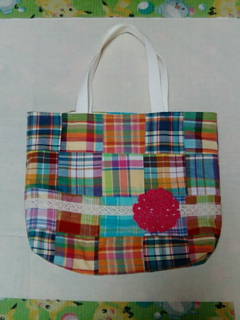 マドラスチェックのパッチワークの生地でトートバッグを作りました。中にもチェックのポケットが付いています。 おまけの巾着とカードケースです。 こちらは、バンダナ柄のポシェット。中にもポケットが付いています。 キッズポシェット2種。裏地が女の子柄とギンガムチェックのポシェット。紐はお子様用の長さです。 今週の「宝塚ガーデンヒルズ」手づくり市に出品予定です。