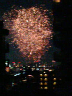 昨夜は天神祭!都島神社のお祭が終わると今度は天神祭です。家から見える花火です。花火を写真に撮るのは、なかなか難しいです。上がって開いた時では、ぜんぜん遅いし下からひゅ~って、「いったん木綿」見たいなのが上がった時に撮る。フィナーレは凄すぎて、撮ってもまっ白け。音が伝わらないのが残念ですが、マンションの建物に共鳴して、心臓に響き渡ります。毎年天神祭が終わると、あー夏休み~って感じです。1ヶ月ちょっと、長いな~