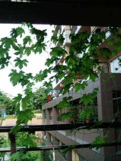 6月27日バルコニーに緑のカーテンを作り始めましたぁ。ゴーヤです。7月9日ツルが伸びて来たので、ネットを張りました。なんか、しょぼい感じだけどカーテンになるのか?4月からマンションの修繕工事をやっていてやっと足場が外れてバルコニーでガーデニングをしようと計画中です。修繕工事長すぎ~。1ヶ月も遅れている上に、なんだか上の階の色が違っていたのかまた、足場を組みだした。この前なんか、うちのベランダにはしごを架けたまま帰ってるし。早くおわってほしいよ~