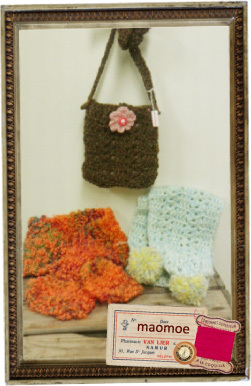 先日、今年最後の「陽だまり水たまり手づくり市」が12月だと言うのに大変暖かく、大盛況で終わりました。ご来店ありがとうございました。そして、明日あさってはATCの「手づくりバザール」です。出展場所は友達と一緒のブース「し-01・02」になります。10月ごろから手芸屋さんで編み物を習っていまして帽子を編みました。 子供用のマフラーです。ポシェットです。この3点は明日出品します。ヒョウ柄のミニトートも作りました。これから、荷作りします~