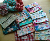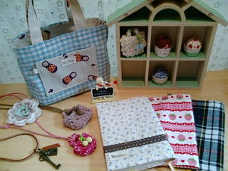 今日は仕事がお休みなので、久々にミシンを使いました。ちょっとした新作発表会です。ウールの生地でお花のブローチ付きトートバッグと春物の生地で文庫本のブックカバー。リバーシブルのポケットティッシュケース今回は普通の大きさのティッシュに加えてミニサイズのティッシュケースも作りました。おなじみピンクッション&ニットのミニミニバッグそして、お次は~お花のフリンジが付いたプチマフラーです。今月の手づくり市に向けてどんどん制作中です。