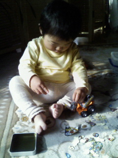 ◎シール遊びにはまり気味←最近寒いし、夜中咳がまだ続くので、室内遊びように買った車のシールが彼の心をヒットしたらしく、(救急車、消防車、パトカー、ショベルカー等の大人の親指位の小さいシール(^^; )晴れててあったかいから外に行こうとの誘いを完全無視で遊び狂うのです(笑)