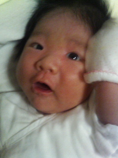今日で1ヶ月になります今日の20時50分になったら、コータに「生まれてきてくれてありがとう」と言おうと思っています今日は1ヶ月と言うことで更新しよう!!と決めていて、携帯更新でもよかったんですがコータが産まれる前日に夢を見たという親友ちゃんにコータと同級生のベビちゃんがお腹にやってきて、3Dのお写真がブログに載ったのでそれをPCの画面でどーしても見たくて。で、PCつなぎましためちゃくちゃ可愛いかったです!!!左手でコータを抱っこして。右手だけでブログ更新中です(`・ω・´)気合十分ですが、意外と右手だけでも早く打ててますさて。3540gと思ったより大きめに生まれてきたコータさんですが。へその緒がうまく取れなくて根元が残っていて紐で縛ったりしてもらい、よく洗ったり消毒、ガーゼ交換などまめにしていたのですが、「おへその様子も見たいし、1ヶ月検診を1週間早めてやろうか。」とのことで、1週間早めに検診してもらいました。そのときの体重が、4210gおへそは無事にきれいに取れて、その様子をみてもらいに15日に又産院へ行ったのですが(4日後)そのときの体重が4490g。。。。。4日で280g増えて、一日70gも増えてる!!!!先生は「(母乳が)よく出て(コータも)よく飲んでいいね!!」と言ってくれましたが、ぷくぷくになりすぎないか心配そしたら「母乳の子は動くようになればしまってくから大丈夫」とのことで一安心。お宮参りに17日に行ったのですが、(梅雨入りでお天気が悪くなりそうだったから早めに。。と思ったのにぜんぜん雨降りませんね)スリングのなかでずっと爆睡でした17日はお参りとお守りを納めただけですぐ帰ってきましたが、3ヶ月くらいになってゆっくりお外に出れるようになったら又ちゃんと祝詞とかあげてもらおうかと思ってます♪寝顔は天使怒って暴れてると怪獣なコータ。地球に来て1ヶ月。今日まで元気に育ってくれてありがとうこれからも、元気に大きくなってね♪