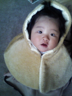 こんにちは!!!(^▽^)気づけばものすっごい久しぶりです。しばらくPC触れなかったら、さっきメールホルダーにものすごい数のメールが登録した覚えのない楽天のショップのメルマガが、一日に3回とかしつこく入ってましたなんかのキャンペーンのときの。ぽち。のときのやつかしら?とにかく、配信停止をして、メールを捨てました。それにものすごい時間かかって。コータ起きてきちゃいましたさて。なんでこんなに放置状態だったかといいますと。・・・・前回の日記は「寝不足」で締めてますね。でも、違うんです。たしかに寝不足ですが。理由はコータさんの鼻水とかではなく。手作りポンチョ作ってました(爆)必死でした(笑)なんせ、ミシンがないので、手縫いですこれまだ途中なんですけどね。後、耳がつきまして、ぼんぼんとリボンもつけます!!!くまさんみたいになれちゃうポンチョめざしましたしかも、これ。裏地はうっすい黄色のキルトなんで。リバーシブル対応という小技繰り出しました(爆)シーチングキルティング クリーム/44これを裏地に。リバーマイクロボア ベージュ/5これを表地に。まぁ。クリスマスプレゼントとか言ってますが、ポンチョが欲しかっただけです。でもね。色々買ってるとお金がどんどんなくなっちゃうからでも。かわいいの着せたいし、やっぱり欲しい。てことで。作れば安いから!!!で、生地を買いました。まず。型紙をおこし。生地を裁断。そして手縫い。ひたすら手縫い。それを。コータが昼寝してるときもしくは夜寝てるときを見計らって。。。。なんでえらい時間かかりました。かわいい!カンタン!手ぬいの赤ちゃん小物本はこれです。妊娠中に買った本です。他にもこれ見たりしながら結構色々ちょこちょこ作ってます(笑)BGMは(自分の心の中で)母さんが~よなべ~をして♪てぶく~ろあんでくれたぁぁ~♪てやつですね。夜中。パパも寝ちゃってひとり。もくもくと手縫いしてるときに心の中で流れてます。しかもそこしか知らない(爆)でもね。形になってくのが楽しくて嬉しくてやみつきです。ところで我が家の鼻水王子ですが。いまだに鼻水残ってます。毎日毎日。鼻水吸ってます。ちっとも治りません。薬はもう飲んでませんが悪くもならないので・・・もうチョイ様子見。今日で7ヶ月☆☆最近めっきりはいはいしないし、。寝返りもしません。どうやら鼻水王子は座って遊びたい!!!のです(^▽^;)でもね。なんだか。テーブルとかで軽ぅくつかまり立ちしようとこっそり自主練してる姿を目撃しました!!!王子。筋トレですか?って心のなかで突っ込みいれて「コータンすごぉぉい」って言いました。我が家に来てくれてありがとう☆これからもよろしくね
