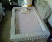 なんだかすっきりしないお天気ですねやっと。PCの調子が戻りました!正確に言うと、PCが調子悪かったのではなく、電話線がおかしかったのですぅぅ(^▽^;)インターネットにつなげて、しばらくすると、勝手に接続切れてたり、又繋がってたり。。そんな感じが続いていたのです。なので、皆さんのところに遊びに行って、カキコして、書き込み完了!!ってやったときには接続が切れてて、カキコできなかったりしてましたG.W中ごろにそんなことになってるのに気づき、あまりに続くので今日こそ文句言ってやる!!とプロバイダーに電話しようと受話器を上げて気づきました。あれ?電話つながってないんじゃない?受話器をあげると普通、プーって音がしますよね?あれがしないんです。で、線とかをカチャカチャ差したり抜いたりしてもう一度受話器を上げるとこんどはプーって聞こえる。じゃあ、とダイアルしてみると、ダイアルし終わると勝手に切れてる。携帯から電話してみたらなぜか話中の音。。。電話線がおかしいんじゃぁぁん||||( ̄○ ̄;)||||気づくの遅いですよね。。でも、自宅の電話ってあんまり使わなくないですか?あんまりというか。我が家は全く使いません(^▽^;)携帯あるし、ネットのときにしか必要性が今のところ無いです。宇宙さんが産まれて、保育園とか幼稚園とか学校とかに通うようになれば又、電話として必要になるのでしょうけれど。。てことで、すぐにNTTに電話して確認してもらい、見に来てもらいましたよ。やっぱり電話線がおかしなことになっていたようで、今はすっかり快適に接続し続けてくれてます♪♪最近お話ばかりで画像も何もないので、もうすぐご対面するであろう宇宙さんの為に買ったベッドみたいなやつを。買ったのはカナリ前なんですけどね。。チェンジングプレイスという名前なのですが。これなかなかいいですよ。ベッドみたいに使えますが、ベッドみたく場所とりませんし、ソファにして使うことも可能なので家にみたいに狭い家にはありがたいです♪♪見た目もおしゃれだし♪(^▽^)毎日散歩に励んでいますが一体いつご対面の日はやってくるのかしら??いつでもいいのよ♪♪と思いつつ、散歩を楽しんでいます(´▽`)ノ♪あ!!そういえば。昨日カラオケ行きました(^▽^)臨月でカラオケってありなんでしょうかね?分からないですけど、家はだいたい毎月一回は行ってます♪♪♪ストレス解消をかねて(*´▽`*)宇宙さんは「あひるのワルツ」(アフ○ックのCMソング)歌うとぐにんぐにん動きますよ♪