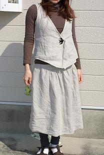ラミーリネンの残りが2mと少し。何作ろうかなぁと悩み、ベストとスカートに。