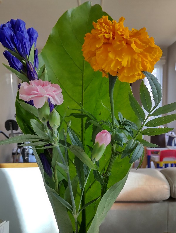 うみが選んでくれた、花と、ケーキ届けに来てくれました。