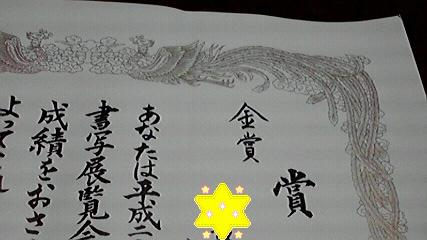 メイ,書写展覧会で金賞を受賞小さい頃からずっと 左手で何でもやってきたメイ。もちろん,習字も左手で書く。宿題に習字があったとき等は,私も職業柄 教えようとしたが 左手を持って教えることが私にはできず,結局 「好きにかいてごらん」と,ほったらかし状態だった。小学5年の時の担任(50代の女性)には,「どうして,今までにちゃんと右手に直しておかなかったのかしら」と,一方的に叱られてしまい,家に帰ってきて泣いていたこともあったっけ…そんなメイを見て,親としてちょっと申し訳ない気持ちでもあった。それが…中学生になり学校の代表として出品してもらえただけでなく,特選に次ぐ金賞をいただけたなんて,嬉しい限りだ運動系の賞状ばかりのメイの賞状ホルダーに,珍しく文化系の賞状が1枚 仲間入りした「何て書いたの?」と聞いても「わすれたぁ~」と,本人は いたって冷静なのですがね…