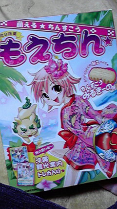 さつきの沖縄土産が,宅配便で届きました。パイナップルのぬいぐるみ,Tシャツ,おきまりの沖縄限定バージョンのハイチュウとぷっちょ…などなどにまじってこんなのがありました。「萌える★ちんすこう」 略して 「もえちん」だそうです。箱の裏の説明が笑えました↓「琉Q伝説!萌えちん」は,本商品の妄想から生まれた架空のアニメ番組。琉Qテレビの深夜枠で放送されるも,平均視聴率0.3%というあまりの人気のなさにスポンサーが落ちてしまい,全12話で終了した。口コミ効果もあり,最近になって少し知られ始めた。(以上箱から転載)ちんすこうは,普通においしかったです